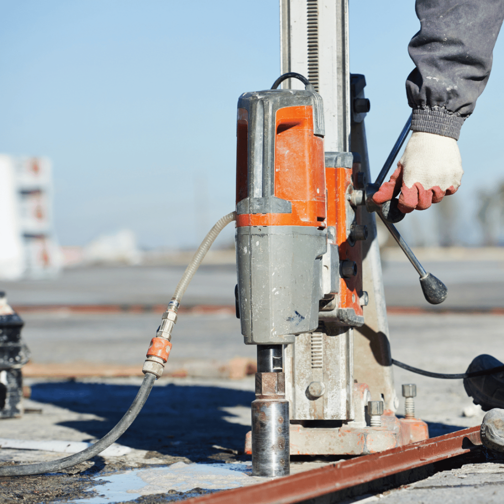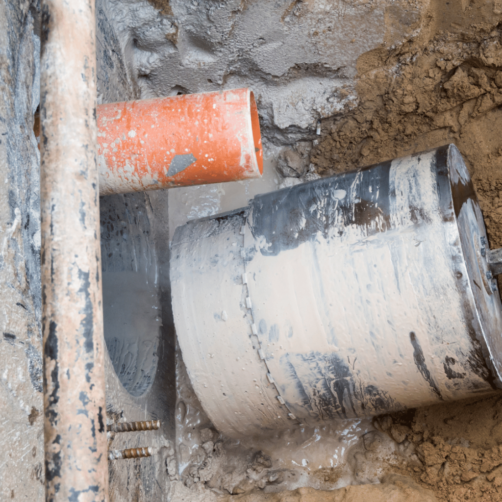 ダイヤモンドコアビットを使用し、コンクリートの構造物に対してコンクリートの壁や床に穴をあける穿孔(せんこう)工事です。